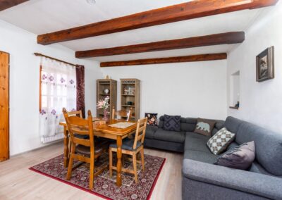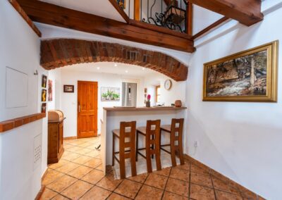 Nemovitost je evidována v katastru nemovitostí jako rodinný dům, což umožňuje bezproblémové financování hypotečním úvěrem. Prošla citlivou rekonstrukcí a je dnes využívána jako plnohodnotné rodinné bydlení s dispozicí 9+1. Zároveň je však stavebně připravena a zkolaudována jako penzion, což nabízí mimořádnou flexibilitu budoucího využití. Dům je z větší části podsklepený s původní funkční studánkou. Prostory se přímo vybízejí k vybudování stylového vinného sklípku.