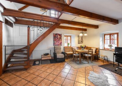 Nemovitost tak nabízí možnost rodinného bydlení, provozu penzionu nebo jejich kombinace, případně realizaci vlastního podnikatelského záměru.